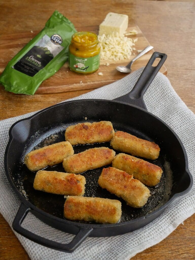 “For an easy yet tasty twist on traditional Welsh Glamorgan sausages, my recipe uses Dragon’s Handcrafted cavern-aged, leek-infused Cavern Emerald Cheddar to save on the hassle of washing, slicing and sautéing leeks. Pair your Glamorgan sausages with Dragon’s tangy Piccalilli Pickle and a crisp side salad, for a comforting autumnal snack.”