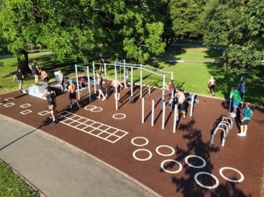 The low maintenance equipment is designed to encourage people of all ages and abilities to try calisthenics. It can be used for free by individuals and by group classes of up to 20-30 people at a time.