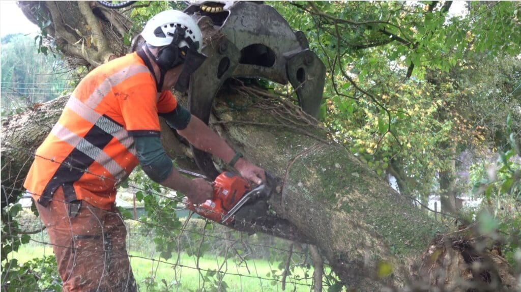 One of the staff members who has benefited from attending subsidised courses is Tomos Williams, Meirion’s son. Tomos returned to the family business as a groundsman after graduating from Bangor University. He is now a qualified climbing arborist, leading a team of his own.