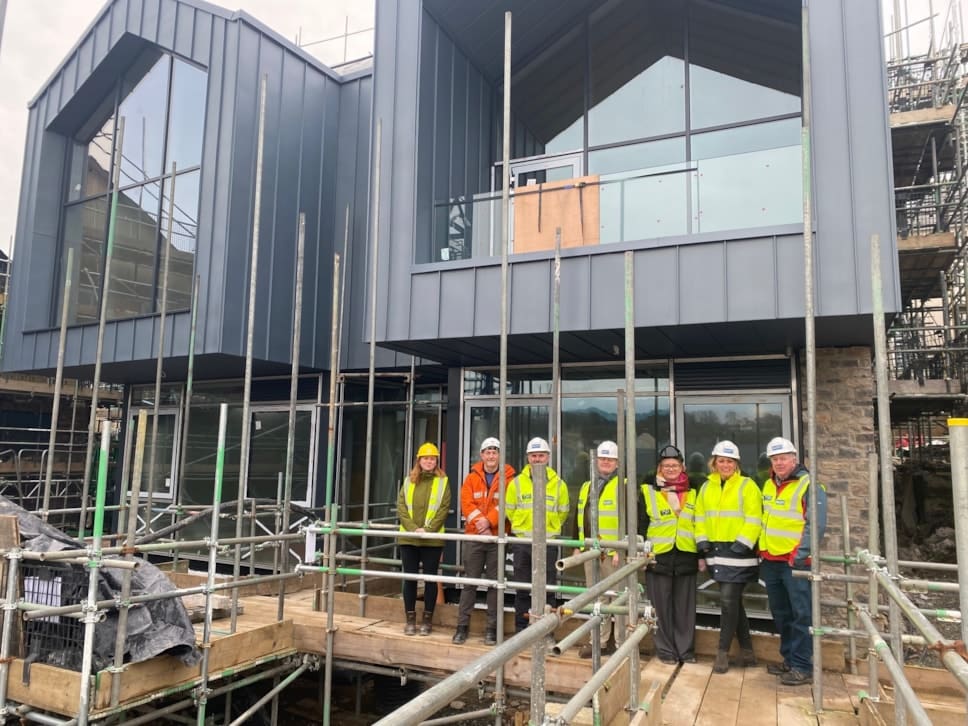 Cllr Gareth Jones, Cllr Rose Blackburn and Cllr Jonathan Grimes, joined by Cllr Harvey and Pembroke Town Clerk Suzie Thomas, had a guided tour of the building that is due to open in Spring 2027.
