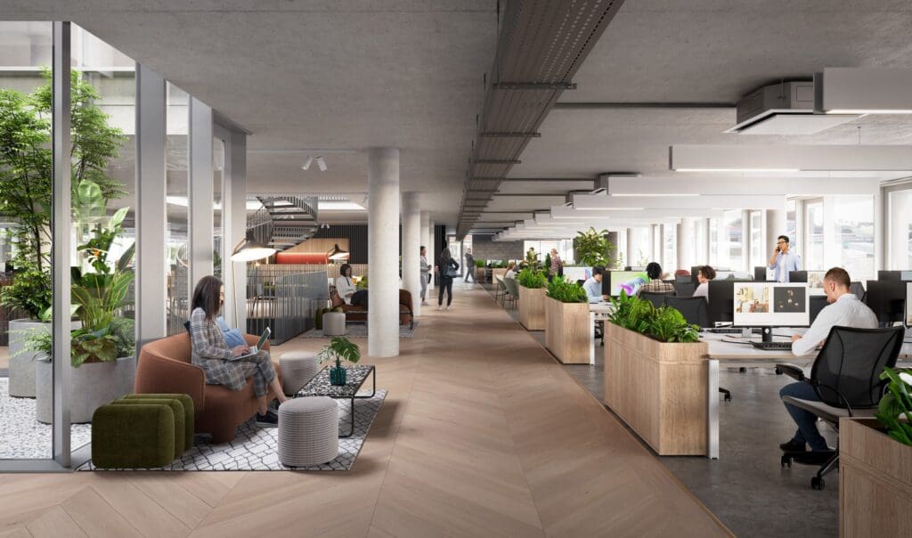 Designed by Architecture 00, the 104,000 square foot scheme includes innovative public spaces with specific areas of the building being offered to the open market to let. These are made up of retail, food and beverage spaces, an event hall, flexible and serviced workspaces, and over 47,000 square feet of Grade A office space.