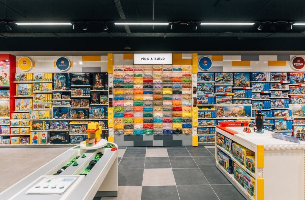 LEGO Pick a Brick Wall – allowing customers to select the exact pieces they need for their builds.