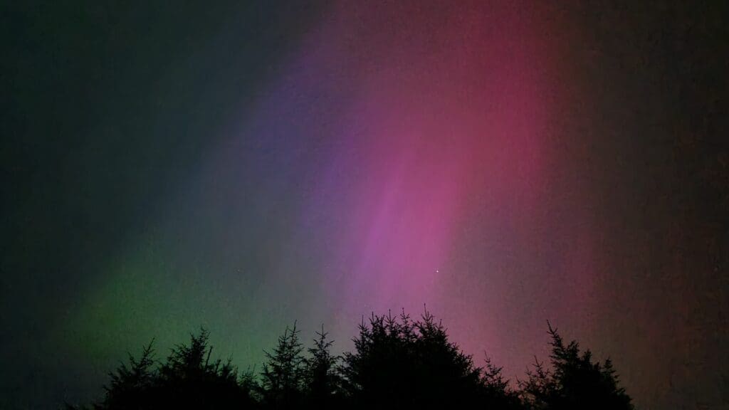 “Those who saw the aurora in the UK recently will have noticed more red overhead, which occurs high up in the atmosphere. Further north, the same aurora would have appeared more green overhead as the green emission occurs much lower in the atmosphere.”
