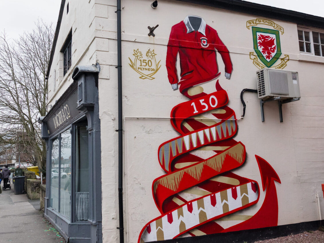 Located opposite the site of Amgueddfa Bêl-droed Cymru | Football Museum Wales, in the heart of the birthplace of Welsh football, the mural has been created as a cultural landmark to reflect the FAW’s 150-year journey and the iconic Cymru shirt.