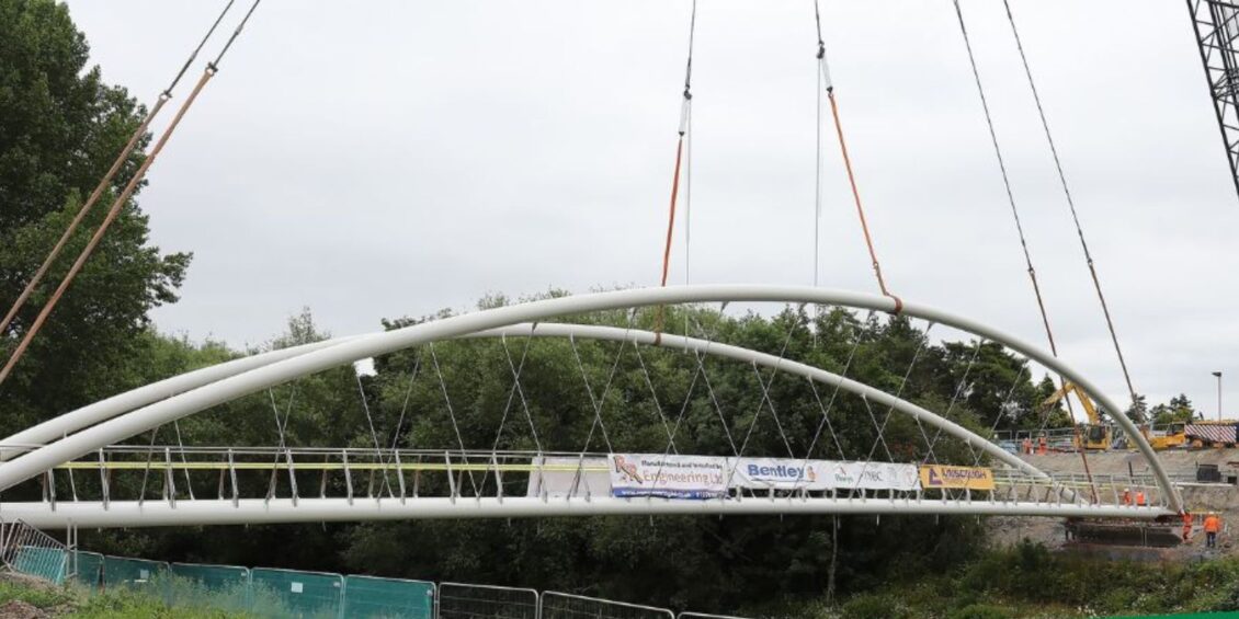 Newtown’s new cycle and pedestrian active travel bridge was successfully lifted into place on Saturday 29 June.