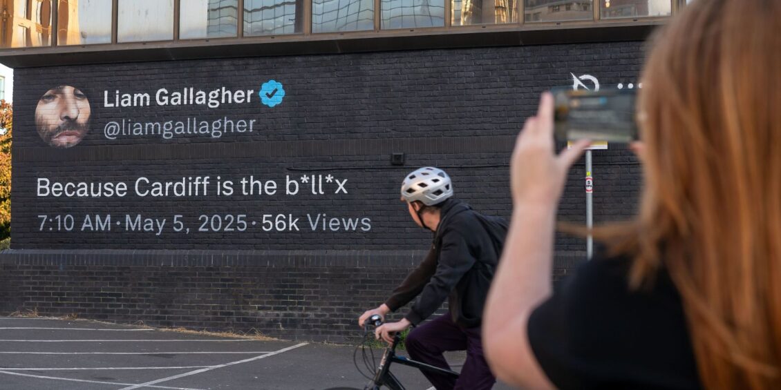 The artwork, unveiled ahead of two sold-out shows in the Welsh capital, is a copy of Liam Gallagher’s viral tweet hailing the Welsh capital: “Cardiff is the bollox.”
