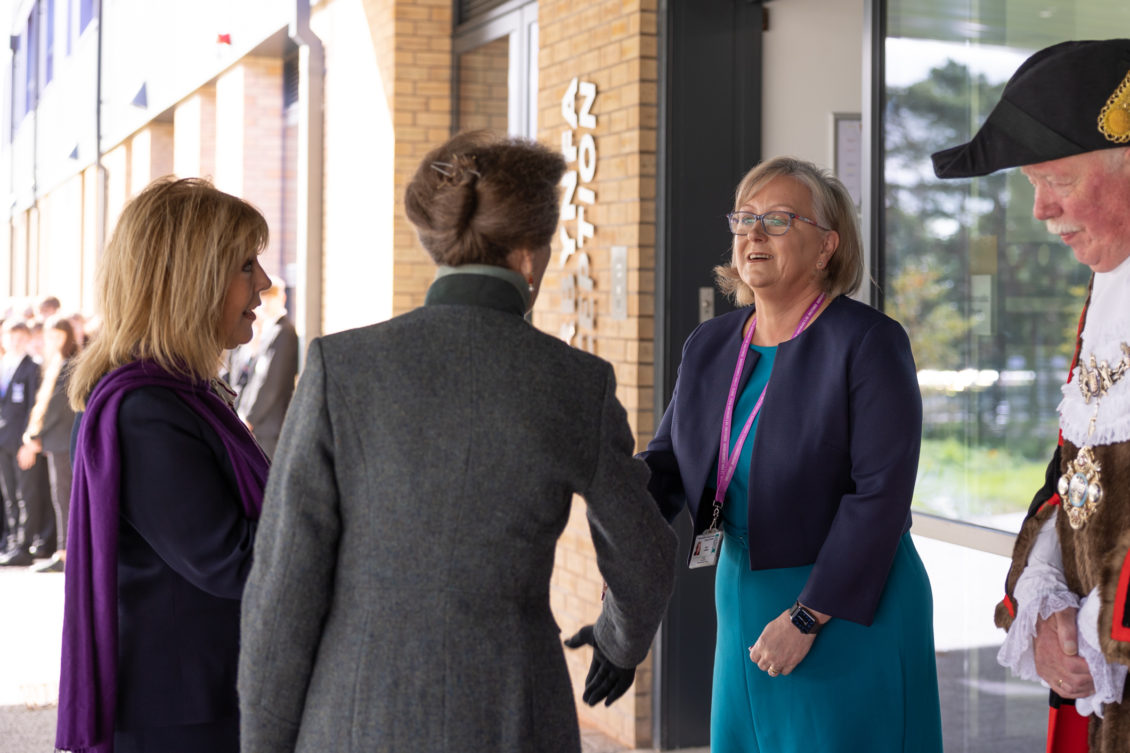 The Princess Royal’s visit began with a guided tour of the £48.7million school by headteacher Jane Harries and head prefects Lucy Ashton, Niall Griffiths and Aimee Pettit, during which Her Royal Highness met students from various classes and chatted to them about their work.