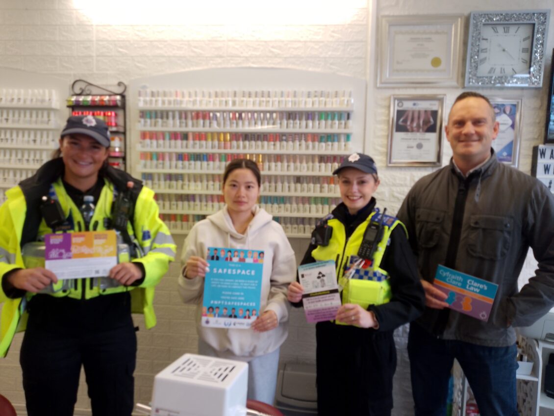 Operation Prunella launched on November 3 and began with officers from the Domestic Abuse Unit alongside local PCSOs visiting businesses in Neath. Phase two was rolled out a week later where we visited an area in Port Talbot.