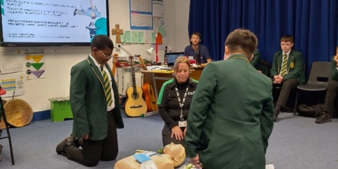 The first of these sessions took place at St Illtyd’s Catholic High School based in Rumney, Cardiff, with a group of year 8 students. The young people listened to National Grid’s electrical safety talk before learning the basics of first aid and having a practice with the CPR dummies. The students loved the session with St John Ambulance Cymru Trainer, Lesa, and National Grid representative, Jacob.