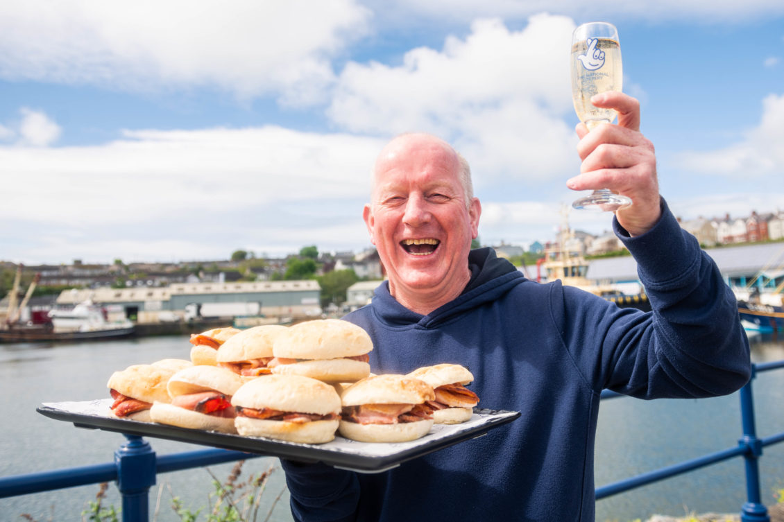 Having discovered his win, the lucky man, Paul Bevans (50), wasted no time in celebrating in style, shouting his workmates a round of bacon rolls!