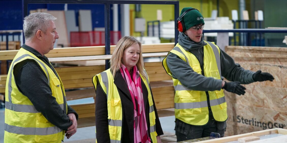 Ahead of the launch, the Cabinet Secretary for Housing and Local Government, Jayne Bryant, visited Celtic Offsite in Caerphilly, a social enterprise within the United Welsh Group that manufactures timber homes from their factory.