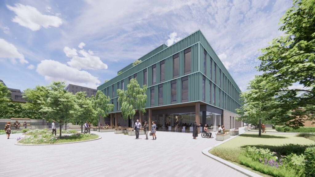 The proposed new academic building will provide teaching, research, and support space for Computing, Maths, Engineering, and Technology.