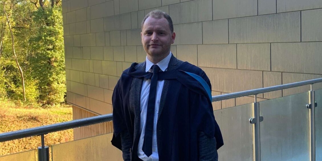 During his studies, Adam also navigated the long-term effects of colitis, a health condition that has posed ongoing challenges. He says the support from Open University tutors helped him manage his condition and stay on track with his course.