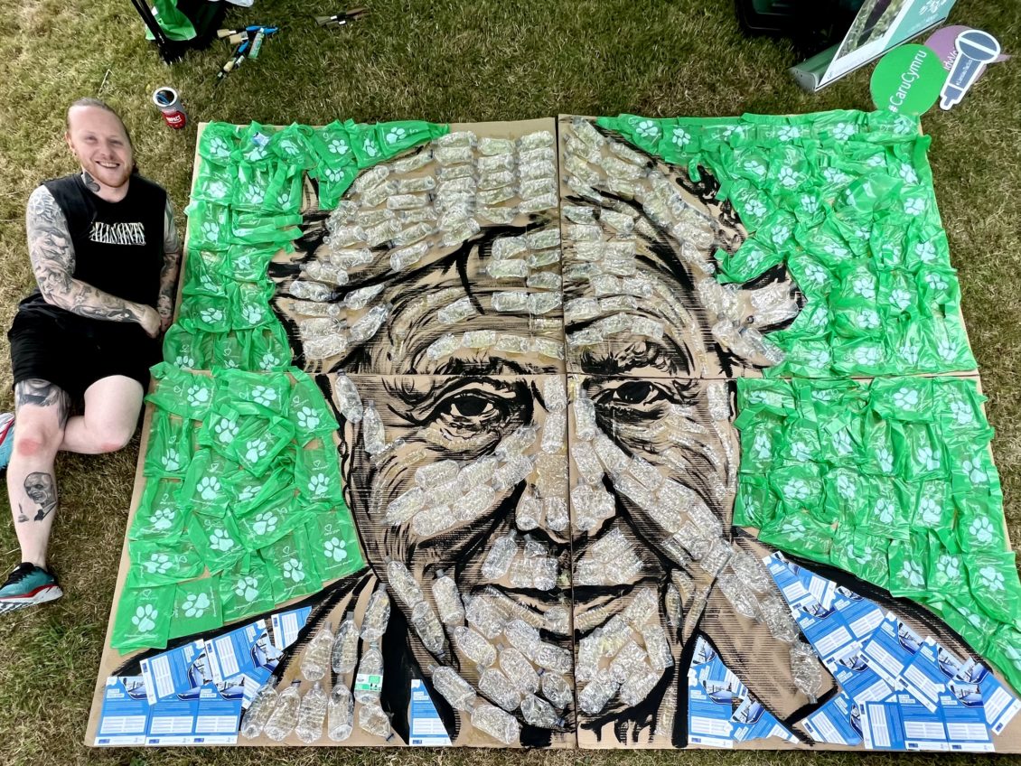 Sir David Attenborough, the world’s greatest environmentalist, has been immortalised in recycled plastic bottles by a Welsh food artist.