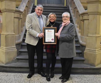 Cllr Chris Smith, Presiding Member of the Council, presented the scroll. He said: