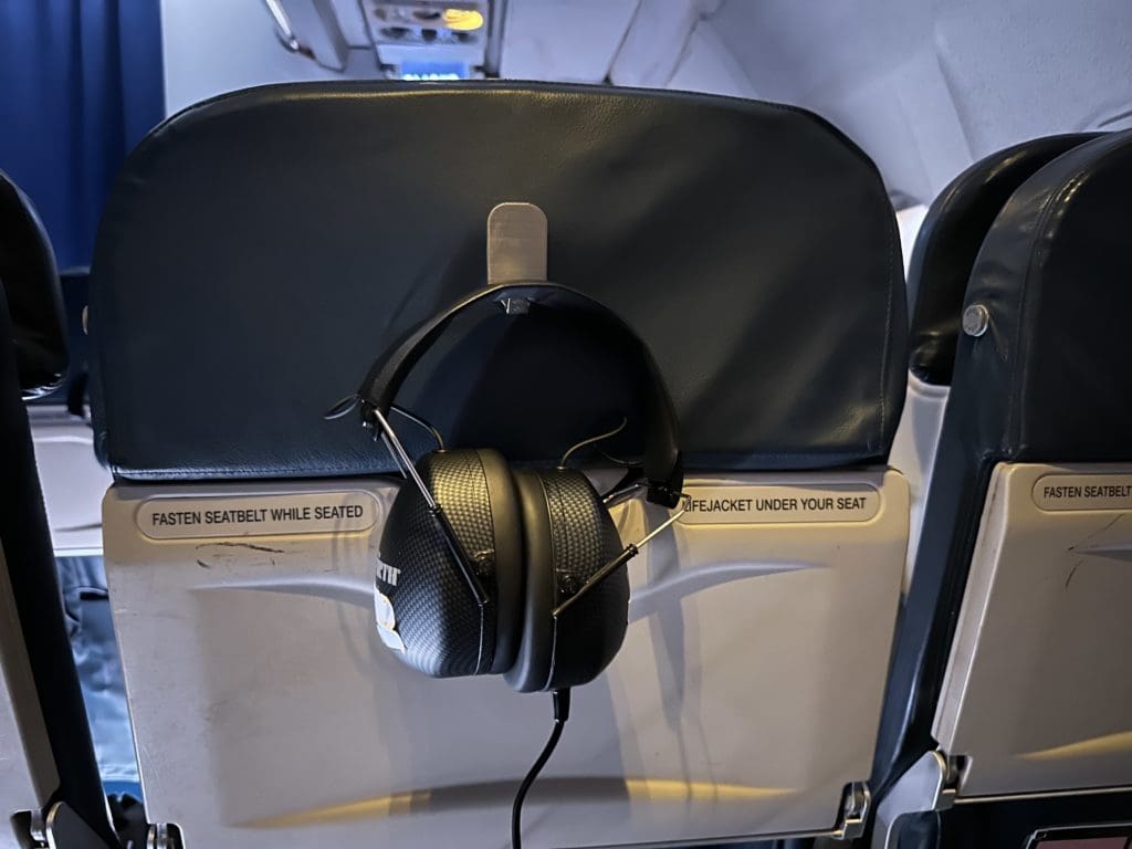 Once seated, you’ll be directed to put on the headphones, fasten your seatbelt and read the leaflet from the back of the seat in front of you. There is a standard safety demonstration and announcement from the captain, in darkness.