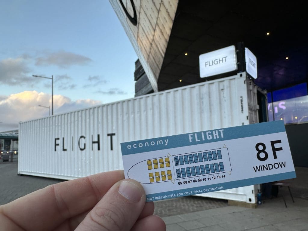 Its interior exactly resembles an Airbus 320 economy cabin and during the 30 minutes explores the Many-Worlds. Interpretation of quantum mechanics, taking audience members through two worlds, two realities and two possible outcomes to their journey simultaneously. When the journey does complete, it’s interesting to hear from others their interpretation of what went on, as each individual comes up with something different based on their view point. Very interesting!