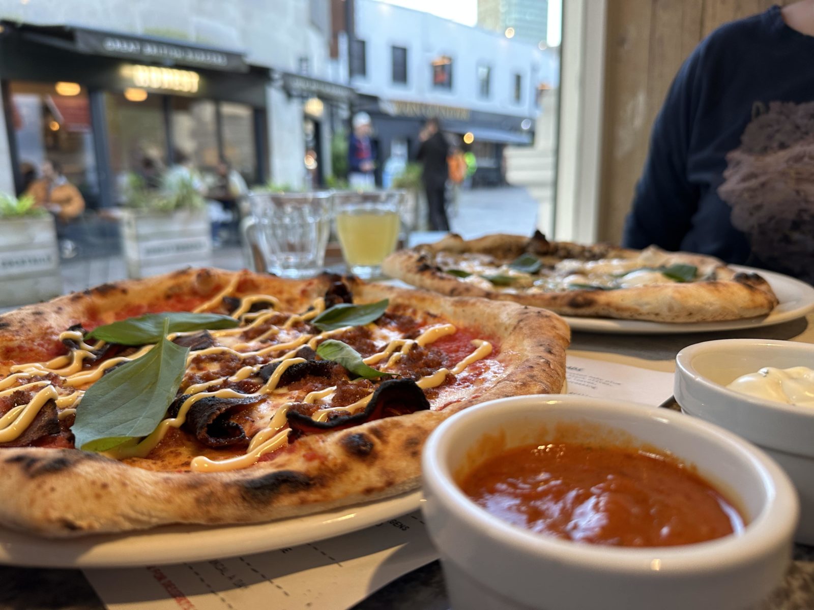 No. 9 was the first time we’d tried a pesto based pizza, and we were pleasantly surprised by not missing that familiar tomato sauce you associate with pizza. With so many flavours and textures, especially the creamy burrata, this pizza left us the most pleasantly surprised of the dishes.