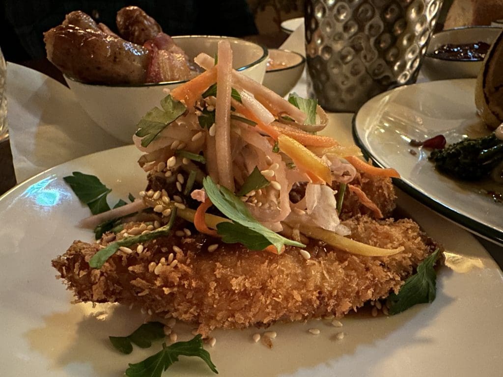 - Asian Fried chicken served with soy, chili, ginger and pickled slaw