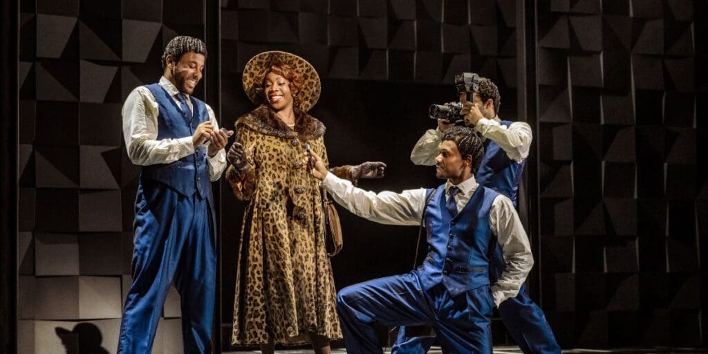 The four male actors all played multiple parts with simple costume changes reflecting the passing years. Quirky props and a plethora of accents made the production feel vast. Miles Anthony Daley (The Voice UK) played the other half of the Treadwell management, George Treadwell showcasing an impressive vocal range. The rest of the line-up was portrayed by Ashford Campbell (9 to 5 The Musical, Dreamgirls, Beautiful), Daniel Haswell (Motwown: The Musical, The Book of Mormon) and Tarik Frimpong (The Wiz, Aladdin) playing original Drifter frontman Clyde McPhatter. Perhaps the interchangeable male characters reflected the transient nature of many of The Drifters themselves.