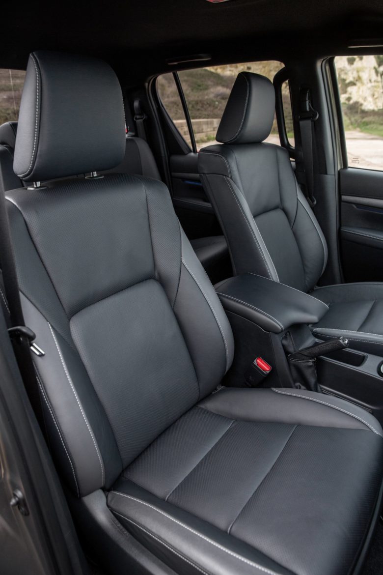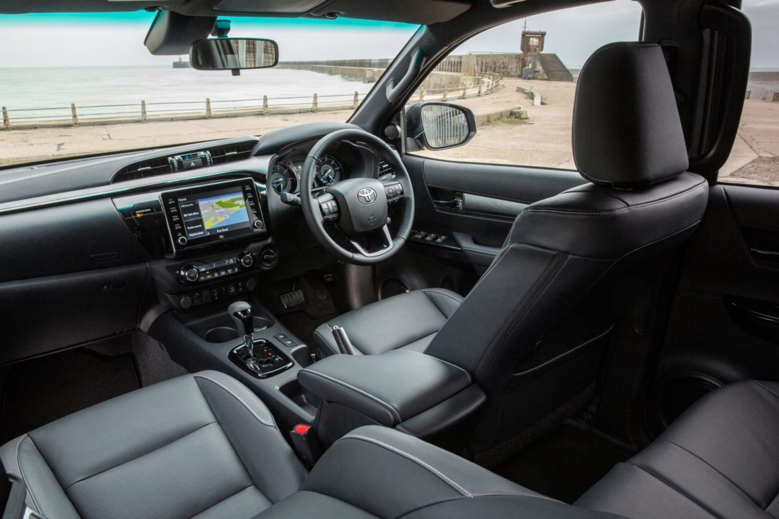 Inside, the Toyota Hilux is a very comfortable pick-up with big, supportive seats, good adjustment on the front pair and clear views to front and side but over the shoulder manoeuvering is more of a challenge and the driver really depends on the 360-degree camera and all round sensors. Bright headlights and big washers/ wipers were appreciated on some autumn mornings and evenings.