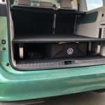 The people-centric design means there were a lot of places to stow on journey items, even for those behind the front seats. Rear laptop or picnic trays folded flat and there were slim pockets for phones with adjacent power points, while the loadbed really was that, wide and long  enough to sleep on, with an underfloor storage area and still more recesses as well as a 12v point for an inflator or cleaner.