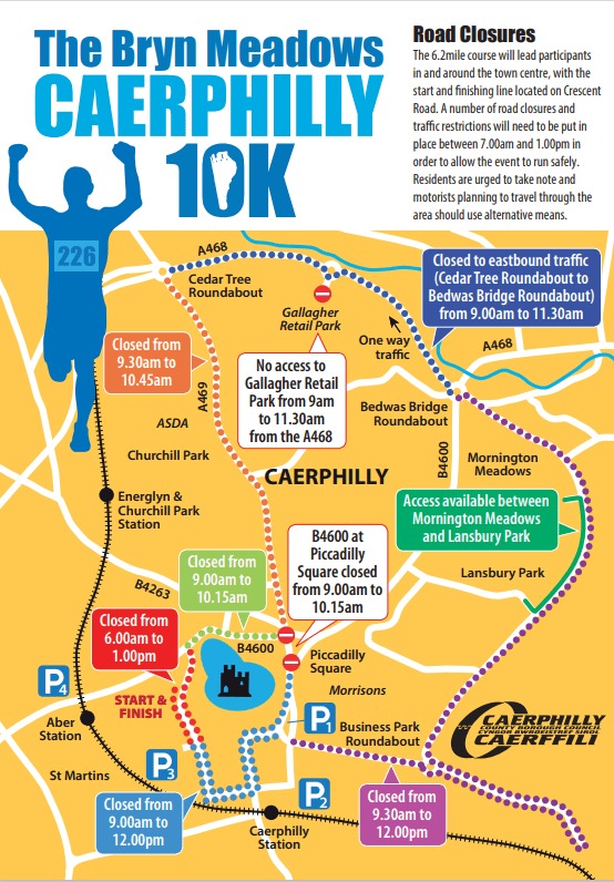 To ensure the safety of all involved, several road closures will be in effect during the event. Crescent Road will be closed from 6:00am to 1:00pm, while Cardiff Road will see closures between 9:00 am and 12:00 pm. Additionally, the stretch of road between Bedwas Bridge and Van Road will be fully closed from 9:30am to 12:00pm.