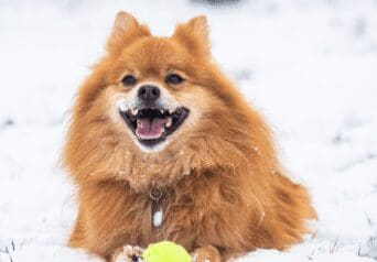 Keep your pet dog away from frozen ponds, lakes or rivers which can pose a danger, and make sure their paws don’t get impacted with snow.