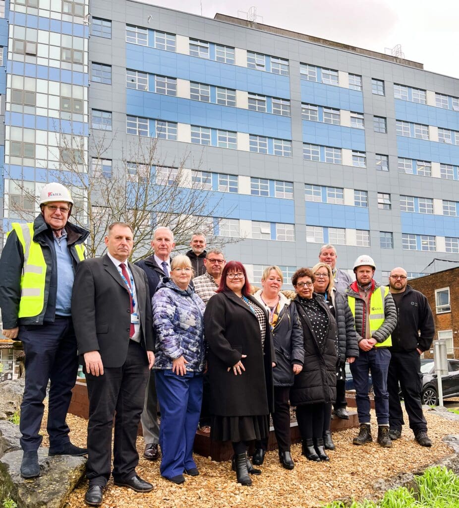PICTURED: Neil Mogford, Kier’s Site Manager; Antony Jones, Capital Business Manager; Ashley Hollington, MACE’s Project Manager; Claire Needs, Bed Manager; Christian Everett-Pride, ICT support lead; Mark Jarrett, Capital Project Manager; Melanie Collins, Head of Operations; Neris Wood, Domestic Supervisor; Zaynor Kadir, Housekeeping Team Leader; Elaine Lewis, Service Manager for Hospital Operations; Wayne Durston, Operational Manager in Estates; Dean William, Kier’s Project Manager and Gareth Davies from the car park team.