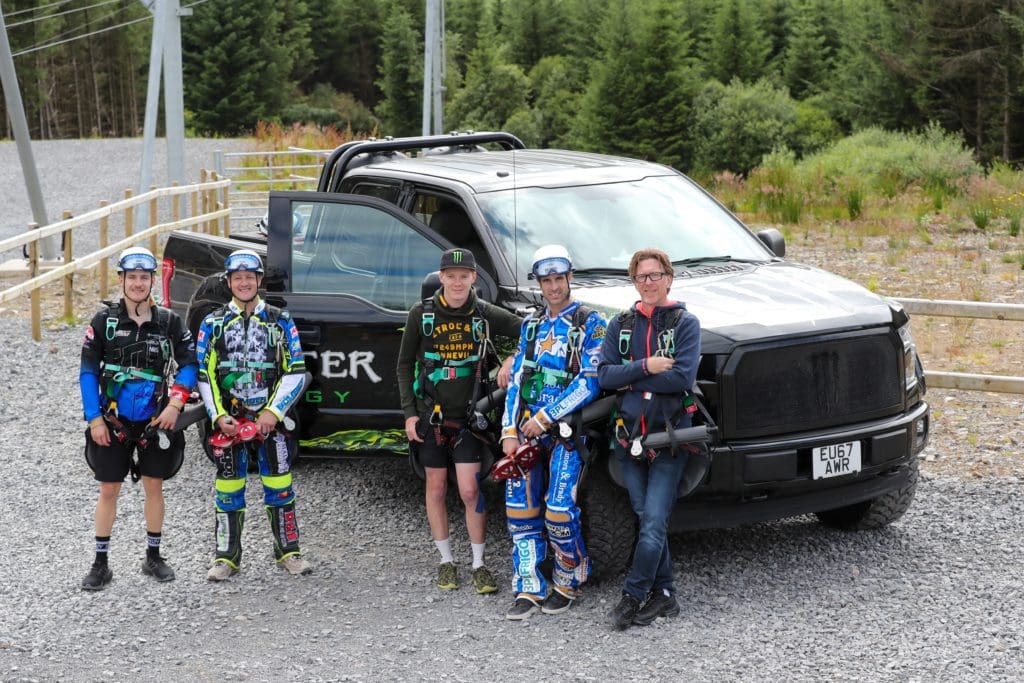 More used to bikes with no brakes, riders including former Cardiff champions Chris Harris, Jason Crump, Niels Kristian Iversen and current track stars Dan Bewley and Robert Lambert took to the skies above Rhigos mountain to enjoy the adrenalin rush that is the world’s fastest seated zipline at Zip World Tower, Aberdare.