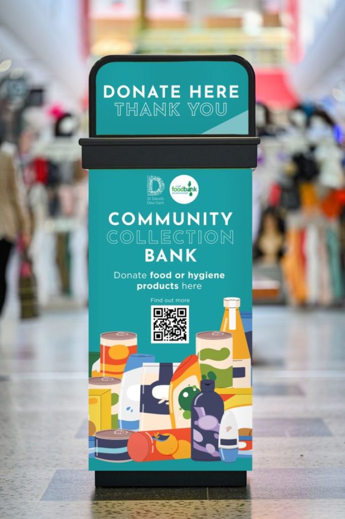 The new St David’s drop-off point will support Cardiff Foodbank and has been unveiled at the city shopping centre. The St David’s Community Collection Bank is located at the Guest Services point on the Upper Level of the Grand Arcade, close to Starbucks, Berskha and Stradivarius, during the centre’s opening hours.
