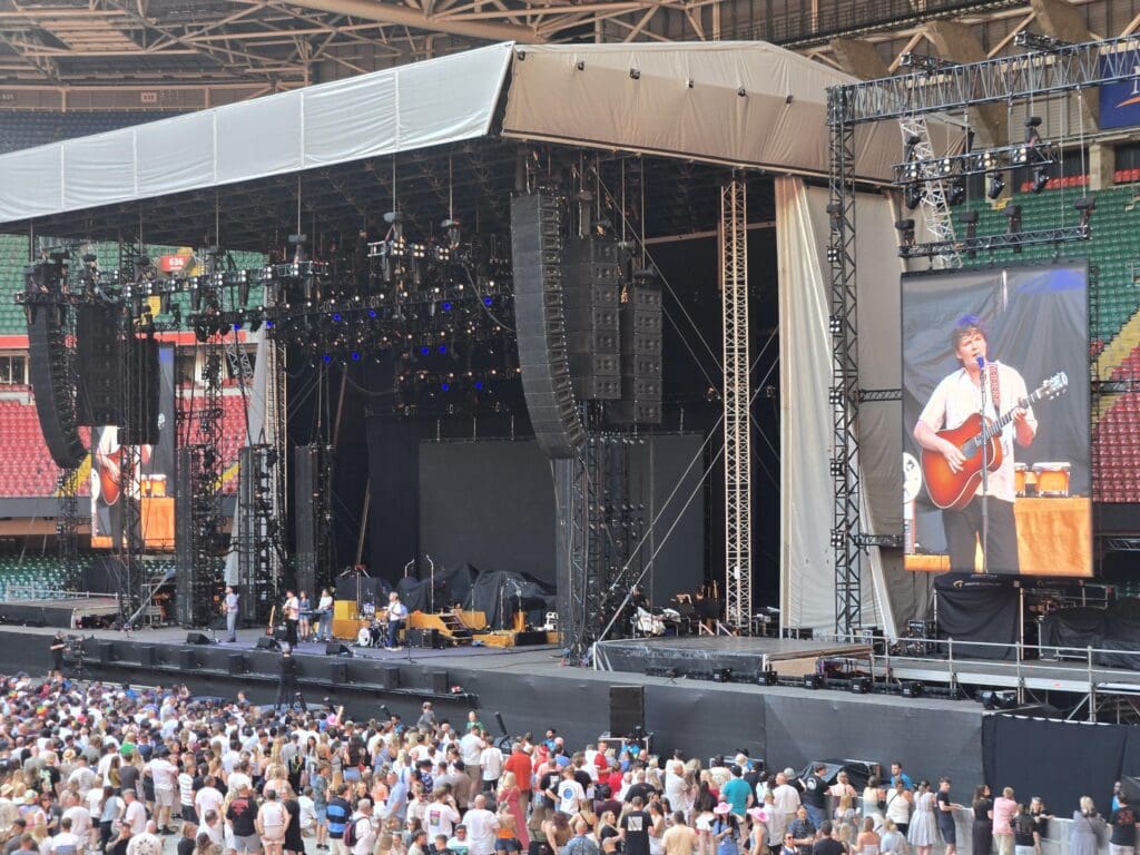 Friday was one of the hottest days of the year, with temperatures pushing 33°C in the capital. The stadium roof was wide open, letting the sun pour in as early fans streamed in and took their spots. There was a proper summer festival vibe from the get-go, sunglasses on, beers in hand, and a full line-up of cracking live music ahead.