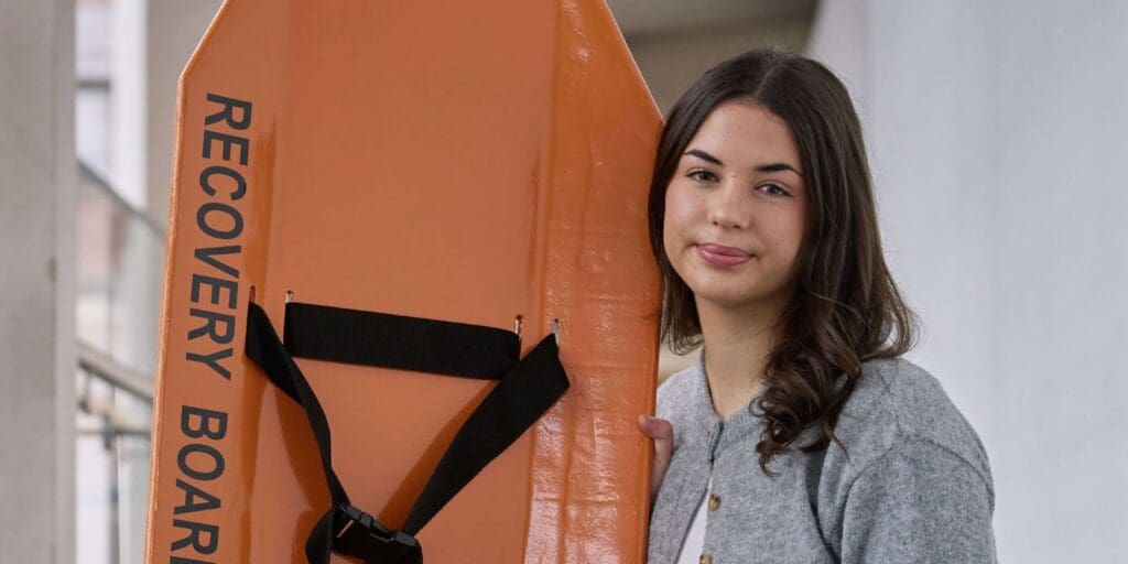 Molly identified that when rescuing a person out of water it is always a difficult process to get the casualty onto the boat without causing further injury. The weight of a fully clothed wet adult is a significant weight and is always challenging to get them onboard. This is a frequent problem faced by the RNLI. Molly’s experience as a RNLI lifeguard also helped her really appreciate the problem.