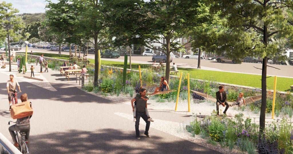 There’ll be new seating, lighting, litter bins, play opportunities and public art. No trees will be lost – and more greenery will be planted.