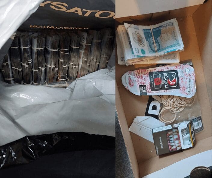 Significant sums of cash were found at each of the addresses, totalling over £137,000. Two of the addresses contained five mobile phones each, while the third contained 93 wraps of crack cocaine and electronic scales.