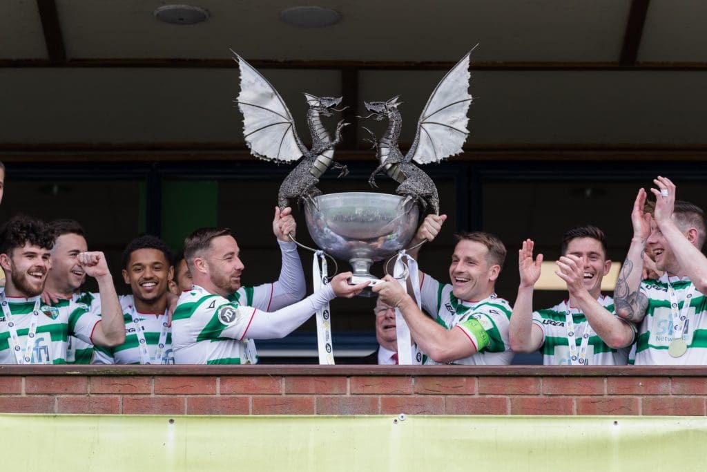TNS secured the league title in March, becoming the first team in Europe to do so, but lifted the trophy this weekend after their last fixture of the league season, following a 4-1 win against Connahs Quay Nomads at Park Hall.