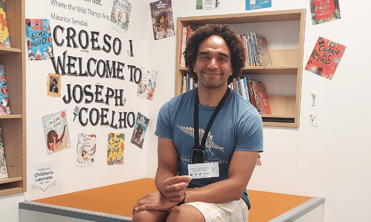 The Waterstones Children’s Laureate for 2022-2024, Joseph Coelho, was welcomed to Caerphilly Library as a part of his ‘Library Marathon’.