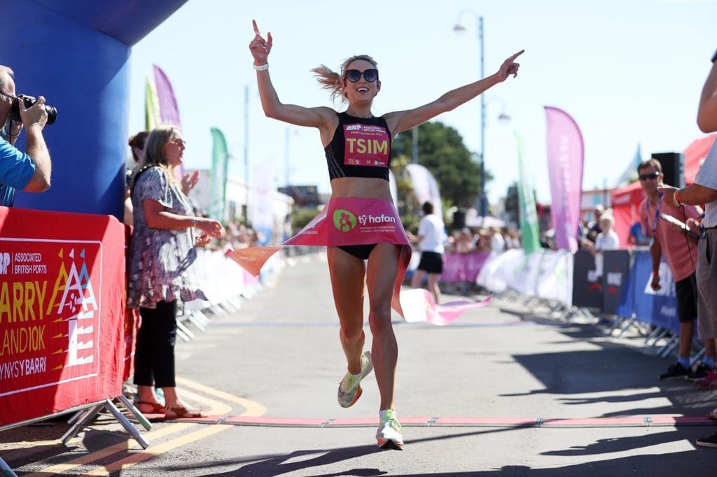 Runners enjoyed sunny but warm conditions, with impressive performances in the elite race despite the undulating course. Olivia Tsim continued her fantastic form to claim the title in the women’s race, clocking an impressive 35:21, finishing over a minute ahead of second placed Lauren Cooper (36:24) of Parc Bryn Bach Runners and Builth and District runner Donna Morris (37:09) in third.