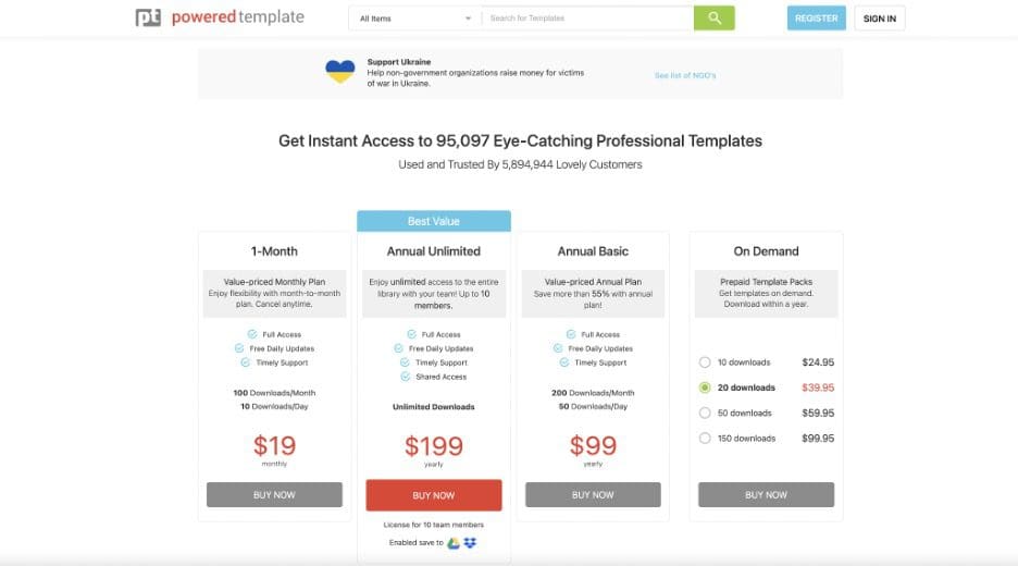 As we can see from Powered Template’s pricing chart, users have the ability to pay $19 per month for access to the entirety of the website’s premium content, or, alternatively, pay up front for a year’s membership at a rate that works out at around $8.25 per month.