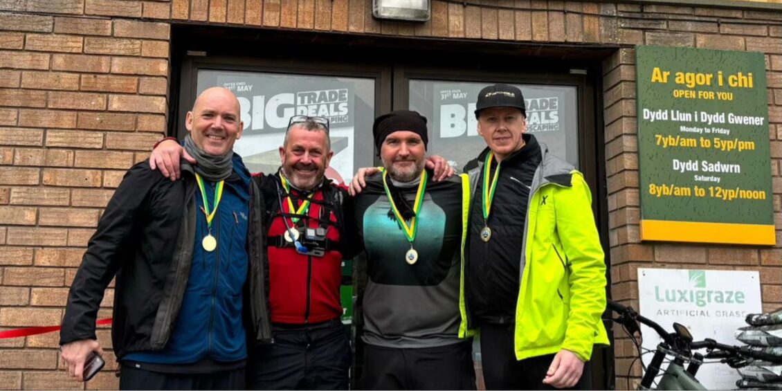 Four friends from North Wales took on a mountain bike challenge to raise money for Travis Perkins’ charity partner, Alzheimer’s Society. Organised by Regional Director, Dafydd Jones, the challenge saw Dafydd and three of his colleagues undertake a gruelling three-day 120 mile bike ride.