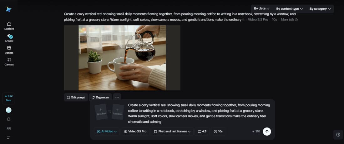 Thanks to its AI video generator, one photo or a few words will do, turning a would-be static moment into a fluid visual story ready to eat. It requires fewer hours of filming; instead, creators shape moments through prompts, references, and smart visual direction.