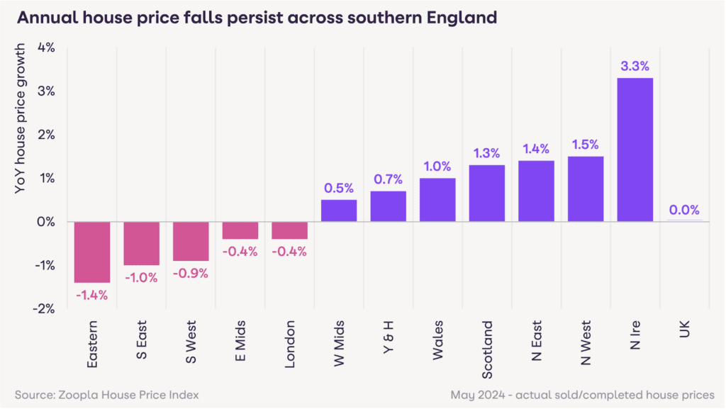 House prices in the south of England are expected to continue to under-perform the UK average as they re-align with incomes as income growth is the key to supporting sales and demand into 2025. Price falls are currently greatest in the Eastern region (-1.4%) and South East (-1%), with Canterbury in Kent topping the list with the biggest price fall (-4.1%). Prices are rising by up to 3.3% in Northern Ireland and 1.5% in the North West region, with Sunderland experiencing +5.2% price increase..