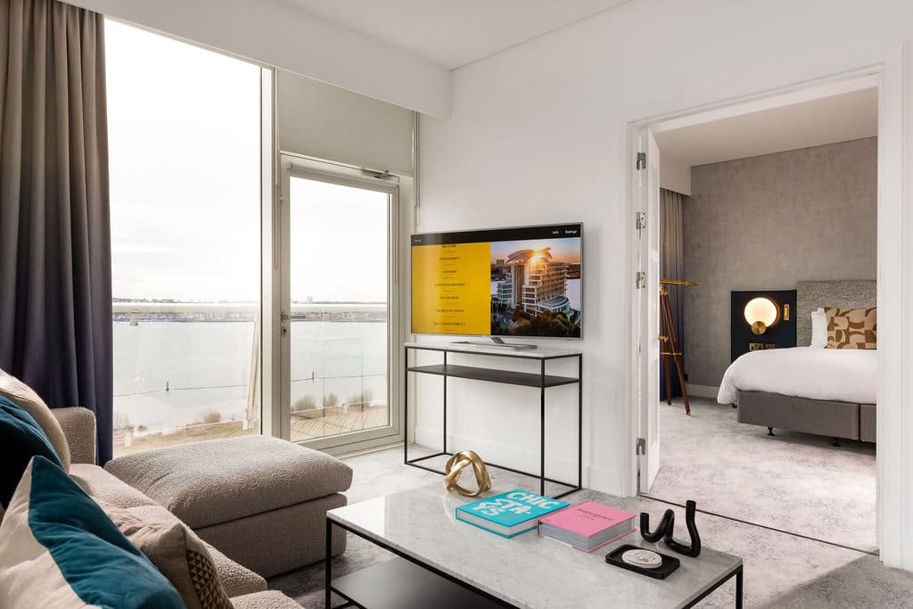 The Tiger Bay Floor offers enhanced amenities and boasts stunning panoramic views of Cardiff Bay and its skyline, providing an exclusive retreat for guests seeking a sophisticated stay.