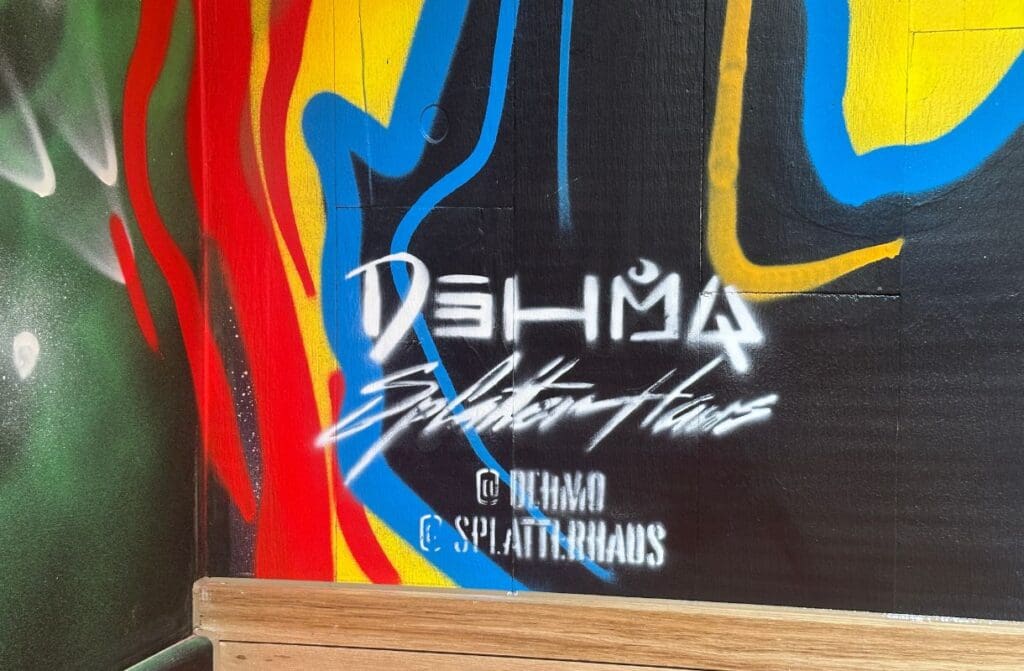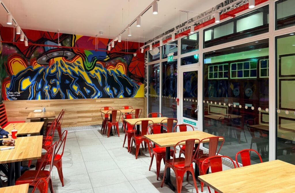 The space plays a big role in that. There is plenty of seating, but the décor is what really catches your eye. It leans heavily into a street art style, with bright, spray painted walls by artists Akopyan, known as Splatter Haus, and Sarkisian, who goes by Dehmq. It gives the place a lively, slightly edgy feel that fits the brand well.
