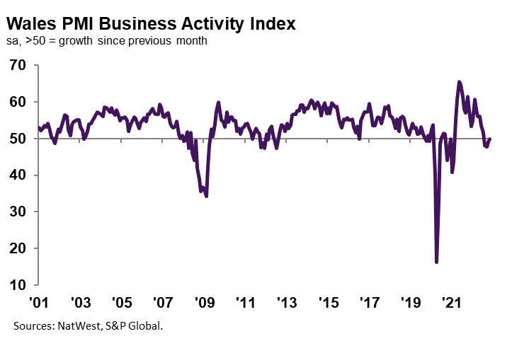 The headline NatWest Wales Business Activity Index – a seasonally adjusted index that measures the month-on-month change in the combined output of the region’s manufacturing and service sectors – registered 49.8 in November, up from 49.1 in October to signal broadly unchanged levels of output. The slower downturn was linked to a less marked contraction in new business during the month. Alongside firms in the North East, Welsh companies registered the joint-highest headline index reading, with the UK average indicating a modest decrease in business activity.