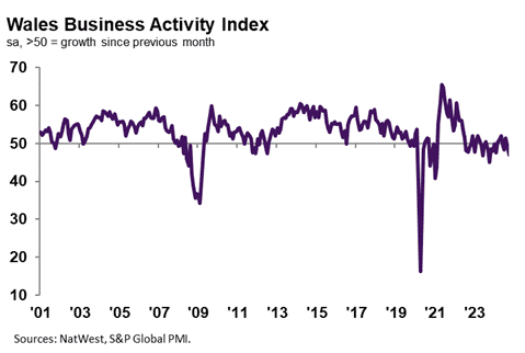 At 47.0 in October, the headline Wales Business Activity Index – a seasonally adjusted index that measures the month-on-month change in the combined output of the region’s manufacturing and service sectors – fell from 48.6 in September. The decline was the second in as many months and the strongest recorded in exactly one year.