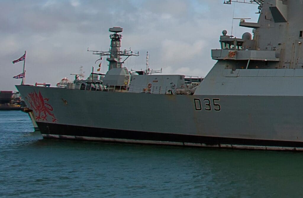 A warship proudly bearing the Welsh Dragon