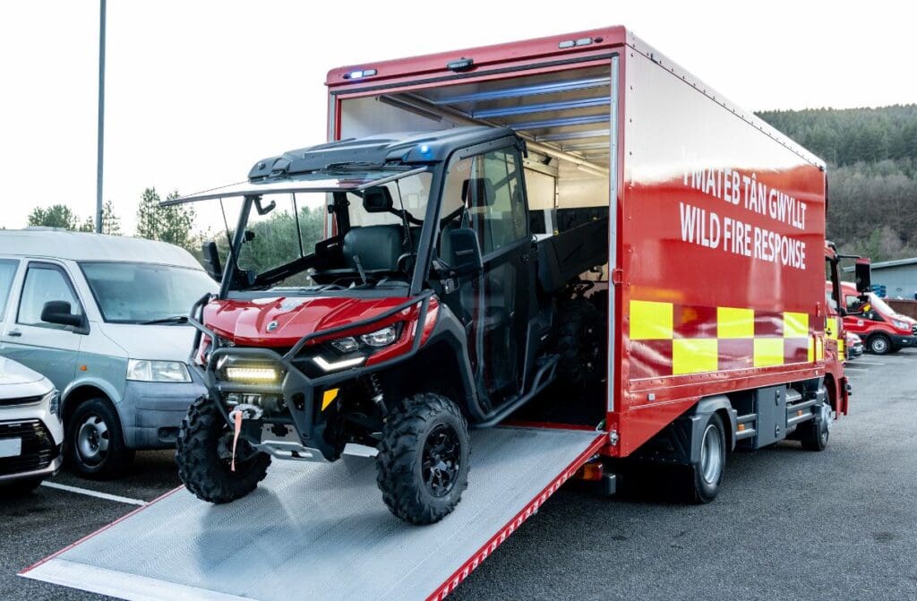Designed to transport the Service’s wildfire response – Can-Am 6×6 all-terrain vehicles – the fleet of four are the result of a collaboration between Fleet, the Wildfire Group and Operational Risk Management (ORM) based at SWFRS Headquarters. The new units will replace the existing land rover and trailers, providing a safer response vehicle for the crews.