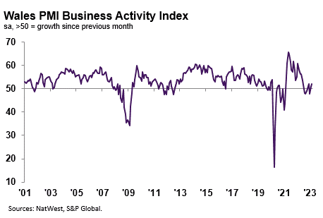 The headline NatWest Wales Business Activity Index – a seasonally adjusted index that measures the month-on-month change in the combined output of the region’s manufacturing and service sectors – registered 51.1 in April, down slightly from 52.0 in March, to signal a marginal expansion in output at Welsh private sector firms. Where an increase in activity was noted, companies stated this was due to a further increase in new orders. The rise in business activity was the third in as many months, but was the slowest of the 12 monitored UK areas.