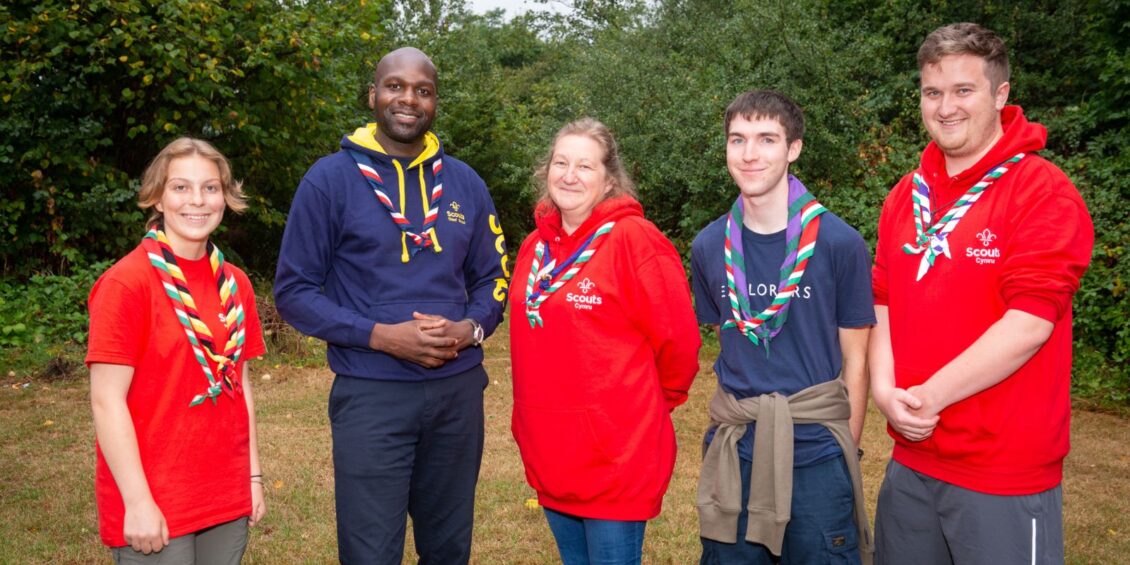 Explorer Scouts Iwan Clark, aged 17 from Merthyr Tydfil, and Lily-Rose Haddrell, aged 16 from Bangor in Gwynedd, were among Scouts from across the UK to witness this landmark event for the Scouting movement. They travelled to Scout Park in North East London, near to where Dwayne attended Cubs as a child, along with volunteer leaders Elizabeth O’Malley, Area Lead Volunteer for Gwent Scouts and Iestyn Nevatte, Assistant leader of Viking Explorers in Pembroke Dock, to see Dwayne make his promise and being invested into his new role. They also heard more about his aspirations to inspire young people from every community in the UK to join Scouts and to recruit enough volunteers to make that happen.